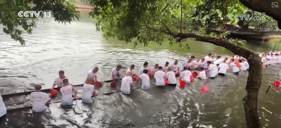 央视网消息: 每年的农历四月初八,广东部分地区素有“起龙”的传统。就是将埋在河底的龙船挖起、洗净,迎接端午竞渡。5月5日、四月初八当天,广州荔湾区泮塘村就举行了“起龙”仪式,将“沉睡”在水底的龙船“唤醒”。