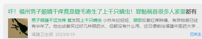 医生提醒,一旦发现眼睛有灼热、瘙痒感,并伴随红肿、揉眼、长睑板腺囊肿等明显症状,一定要高度警惕螨虫感染,并及早到正规医院眼科门诊确诊、治疗。