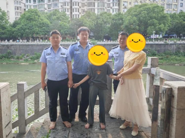 5月8日17时许,苏仙派出所接到群众李女士求助:下午带孩子小赵(化名)出来玩耍,转身孩子就不见了。接求助后,值班民警王巨龙一边安抚李女士的情绪,一边根据其提供的线索迅速展开追踪,最终在苏仙南路旁的郴江河道发现了小赵的身影。
