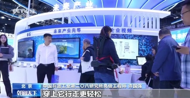 中国兵器工业第二〇八研究所高级工程师 许国强:主要两种功能,一种是助老助行,对于腿脚不灵便的老年人,穿上它行走会更轻松;另一种是搬运功能。
