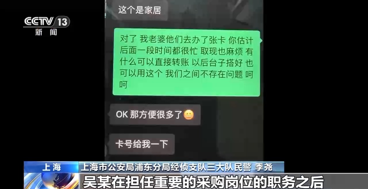 上海市公安局浦东分局经侦支队四大队民警 张军波:吴某在供应商多次明示或暗示可以给好处费后,开始收受这些钱款。他把收的钱都存在岳母账户里,用来买理财,并对外声称这些都是自己的正常公司收入。