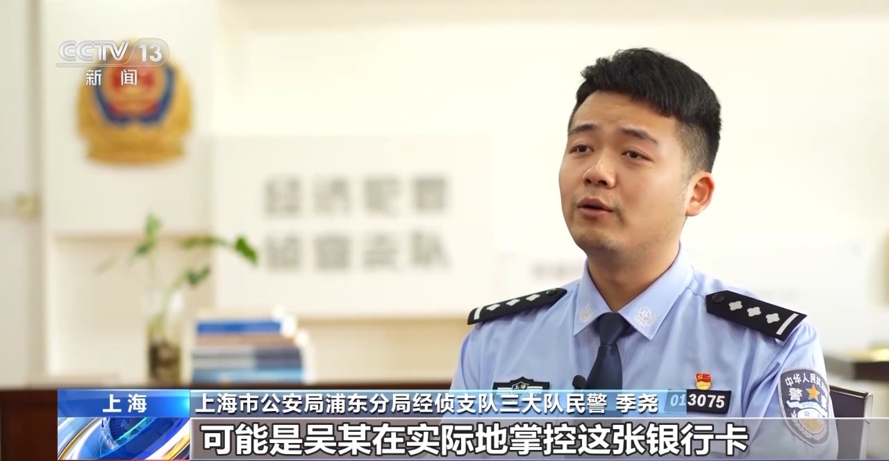 上海市公安局浦东分局经侦支队三大队民警 季尧:我们研判可能是吴某在实际地掌控这张银行卡,用于资金归集和转移。基于这一线索,我们开展了穿透式查询,结果发现更多关联银行账户浮出水面。