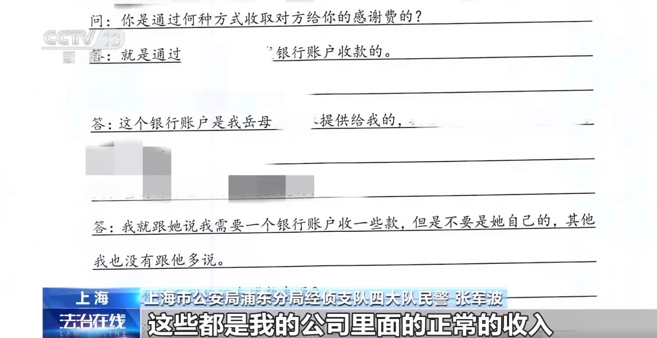 上海市公安局浦东分局经侦支队三大队民警 季尧:每个月固定有一些资金来往,一段周期就会有一些不是整数的,带有几元几角几分的汇款进入账户,而且金额从5万元到30万元不等。