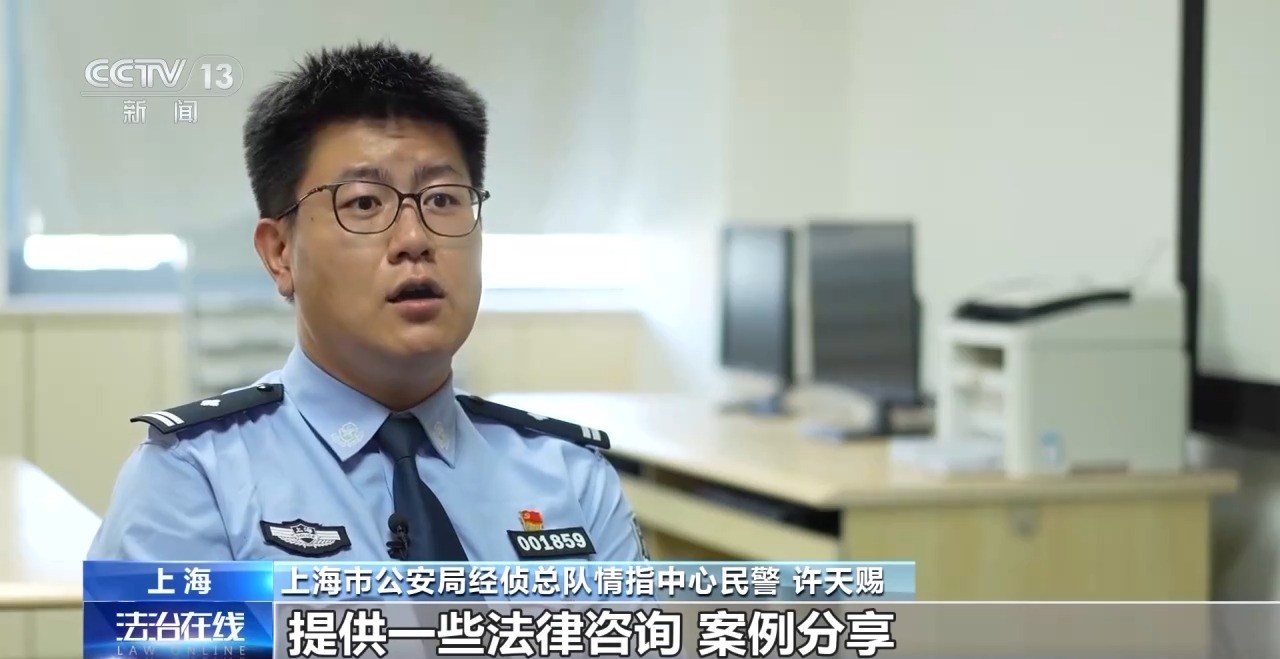上海市公安局经侦总队情指中心民警 许天赐:护企工作站的工作内容是给企业提供一些法律咨询、案例分享和报案指引的服务的功能。解决企业报案难,不知道如何报案的难点和堵点。
