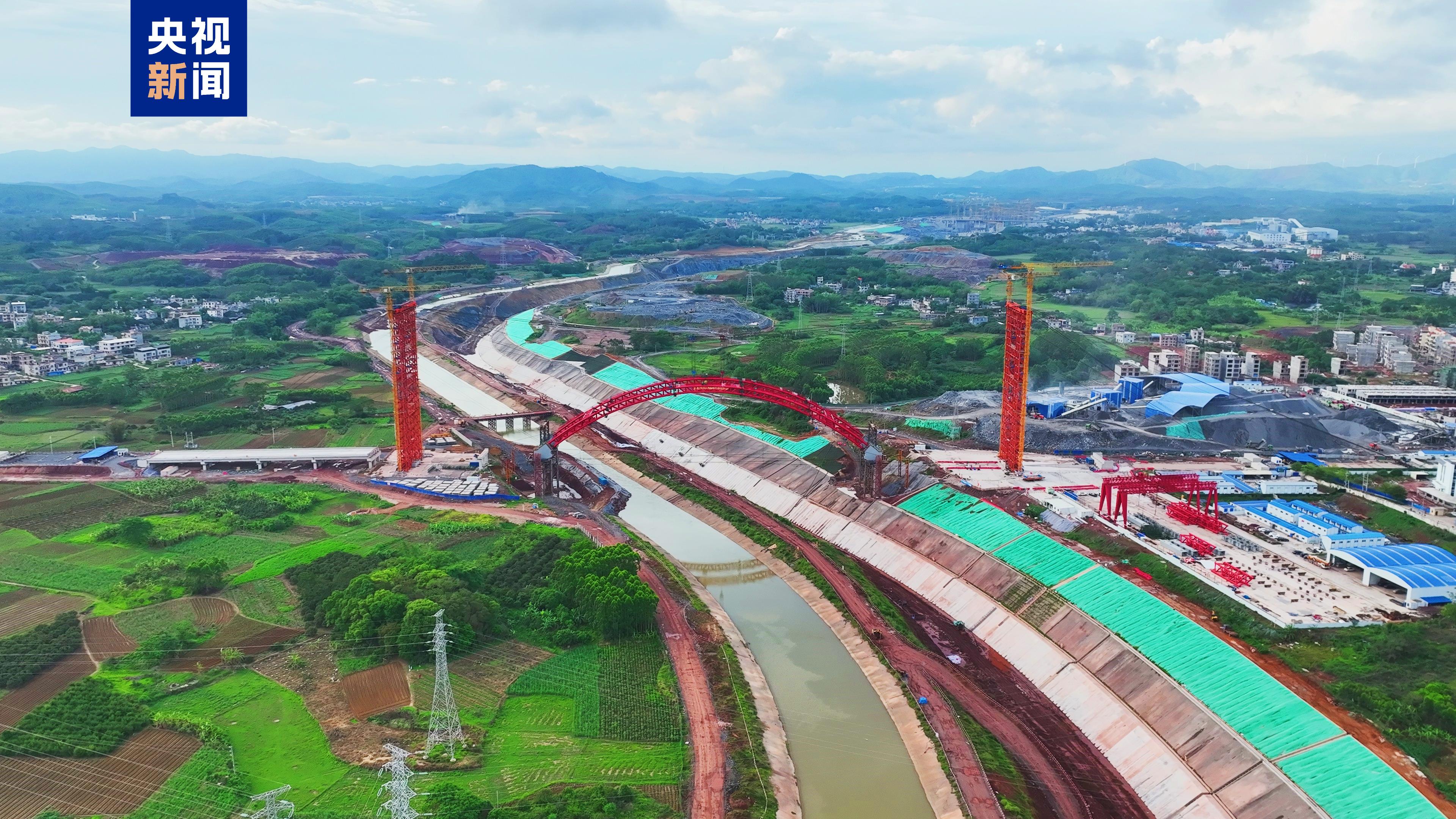 5月15日,平陆运河陆杨新村大桥拱肋顺利合龙。