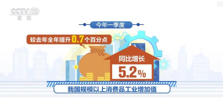 数据显示,今年一季度,我国规模以上消费品工业增加值同比增长5.2%,较去年全年提升0.7个百分点,社会消费品零售总额超12.47万亿元,同比增长4.6%,消费市场规模持续扩大,消费提质升级趋势明显。