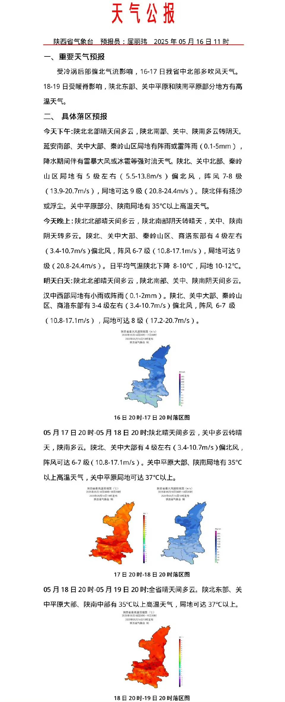 受冷涡后部偏北气流影响,16-17日我省中北部多吹风天气。18-19日受暖脊影响,陕北东部、关中平原和陕南平原部分地方有高温天气。
