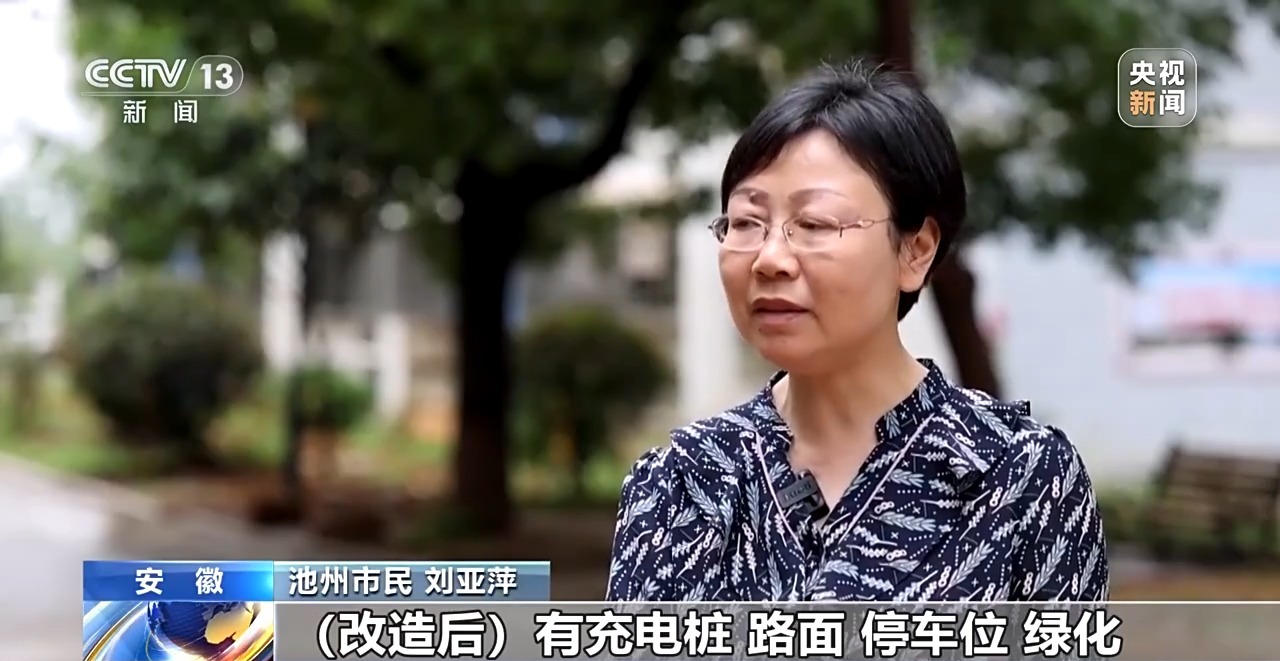 池州市民 刘亚萍:(改造后)有充电桩,路面停车位,绿化,充分吸纳了我们的居民意见,感到很开心也很满意。