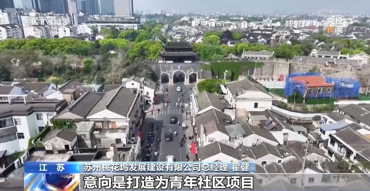 苏州桃花坞发展建设有限公司总经理 翟健:首先是已经建成的阊门西街东侧地块,目前正在按照中医药文化特色街区的方向进行打造。同时阊门西街西侧地块,我们也在加快方案设计和前期的手续办理当中,意向是打造为青年社区项目。