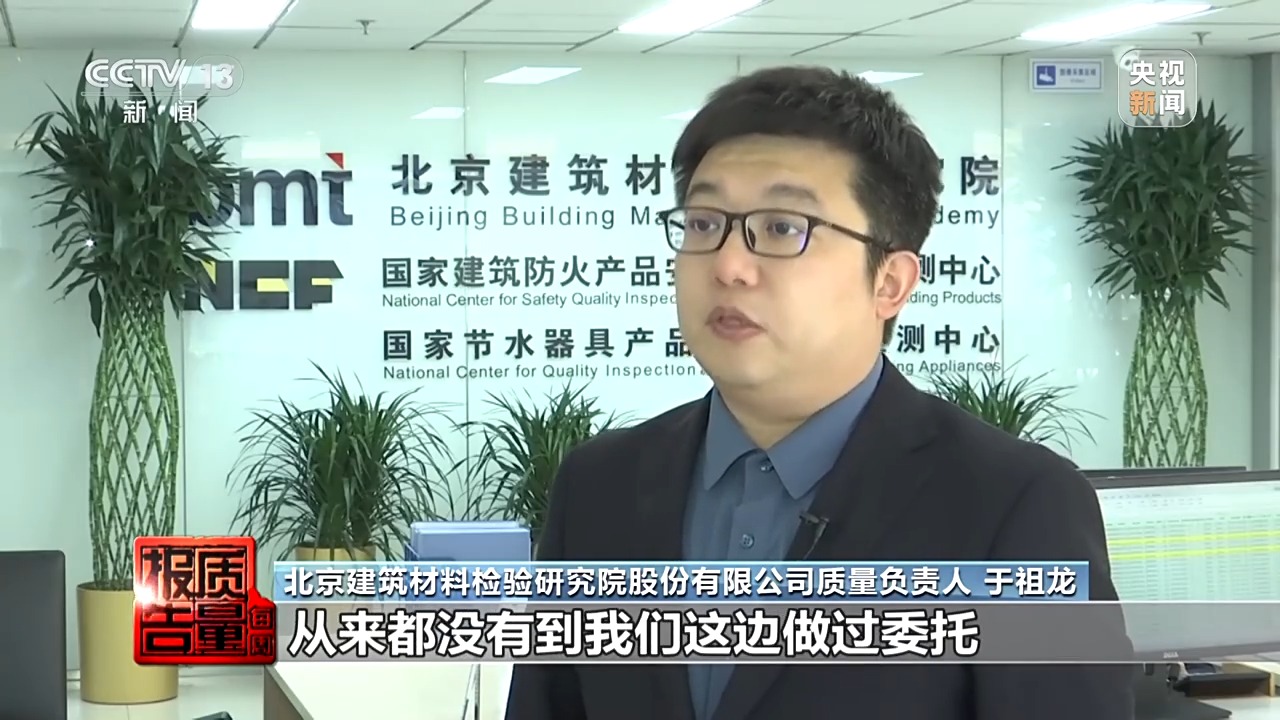 北京建筑材料检验研究院股份有限公司质量负责人 于祖龙:您提供的这两份报告里面的委托单位从来都没有到我们这边做过委托,其中的委托单位信息和您对应的产品信息,通过和我们的存档报告进行核对也是完全不一致的,实际上它是一个仿冒的报告。