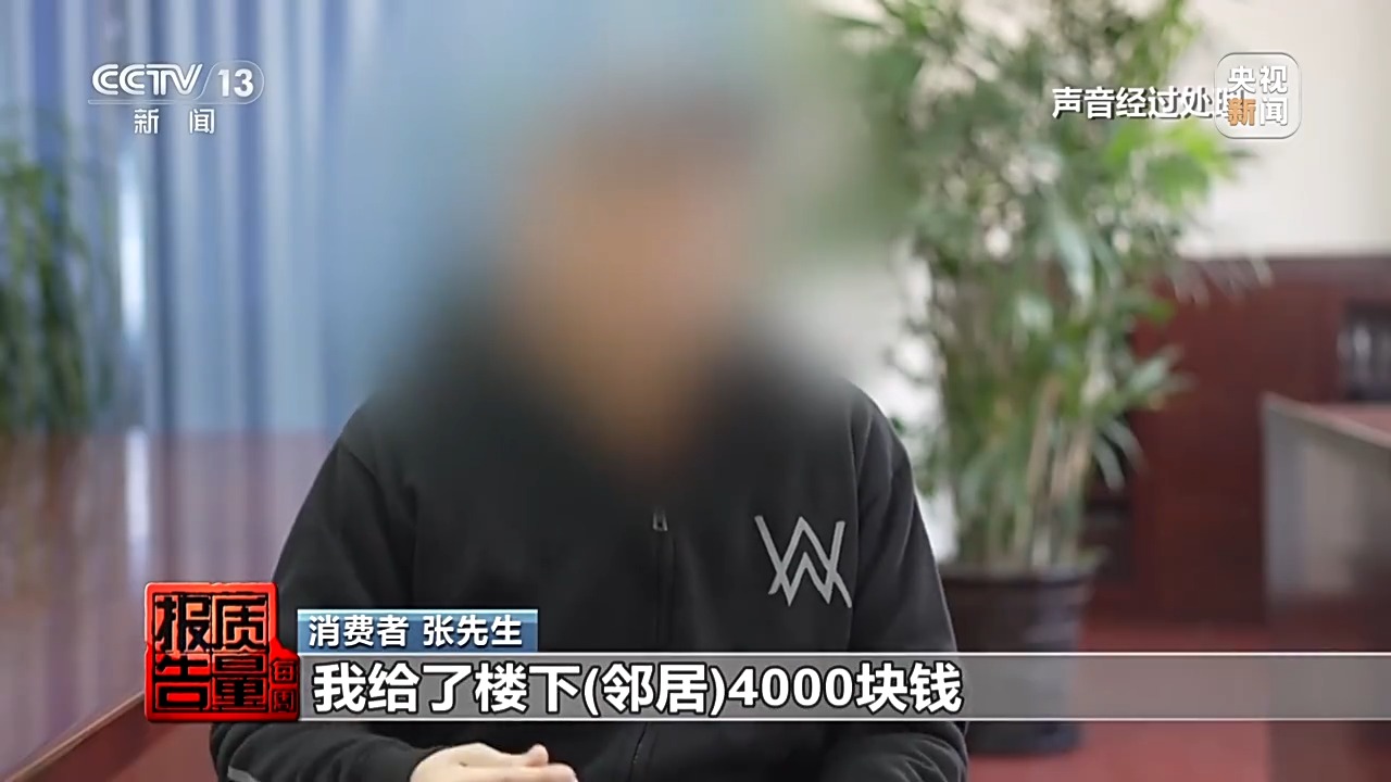 消费者 张先生:楼下还是漏水,我因为做这个事情做得伤心了。我给了楼下(邻居)4000块钱,我想你们自己找人帮着自己修一修吧。