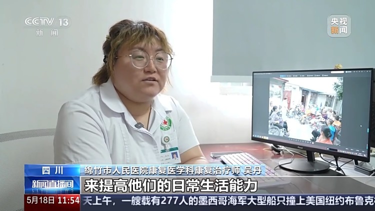 绵竹市人民医院康复医学科康复治疗师 吴丹:通过我们系统的培训模式,来提高他们的日常生活能力以及出行能力,目前我们小组里面已经有7位伤员找到了工作。