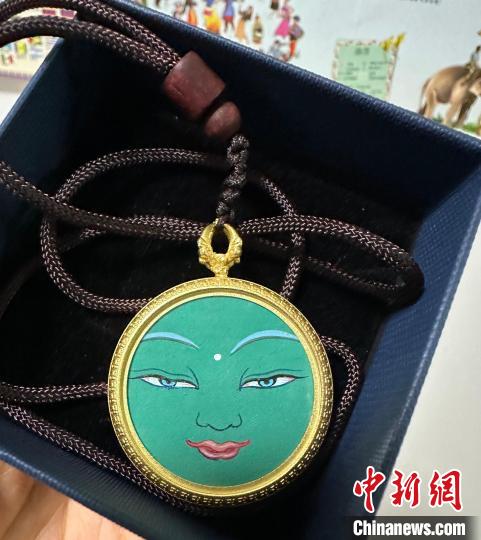 图为藏族画师扎西当知布绘制的佛眼小唐卡饰品,受到游客的喜爱。中新社记者 丁思 摄