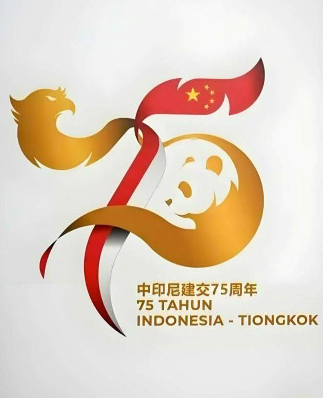 今年4月13日是中国与印尼建交75周年纪念日。周浩黎以官方庆祝标识的图案形容双边关系,即:神鹰与大熊猫在国旗丝带的联结下交织在一起,象征两国之间的包容与珍视,蕴含着希望和启示。