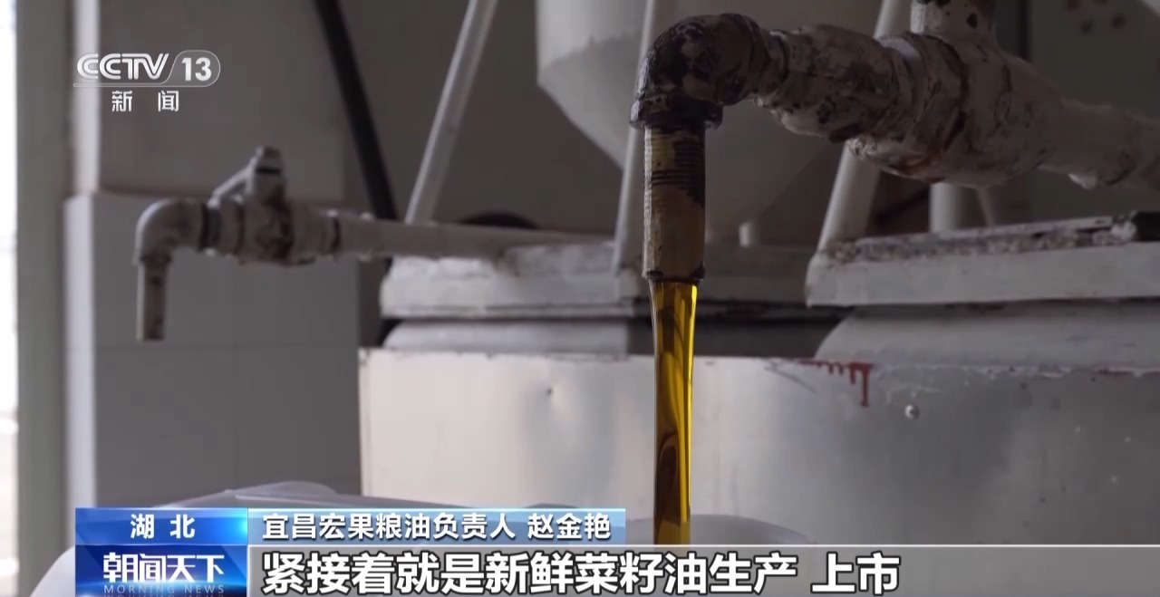 宜昌宏果粮油负责人 赵金艳:出油率高,价格自然也高,农户卖得也开心。我们采取“公司+村+农户”订单收购模式,今年5月中旬菜籽上市以来,已收购油菜籽上千吨,紧接着就是新鲜菜籽油生产、上市。