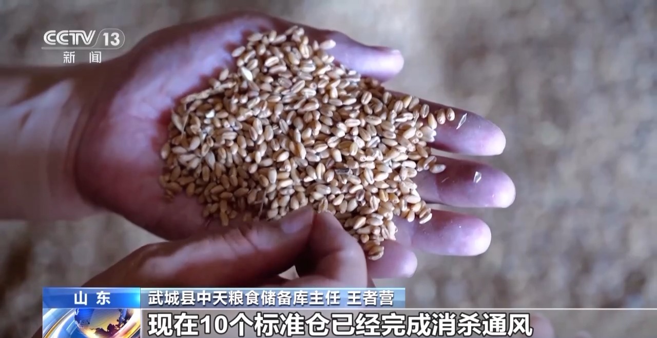 武城县中天粮食储备库主任 王者营:这套除尘系统改造后,粮食入库损耗能再降0.3个百分点。现在10个标准仓已经完成消杀通风,2万吨仓容正在等待今年新小麦入库,日收储能力可达1000吨。