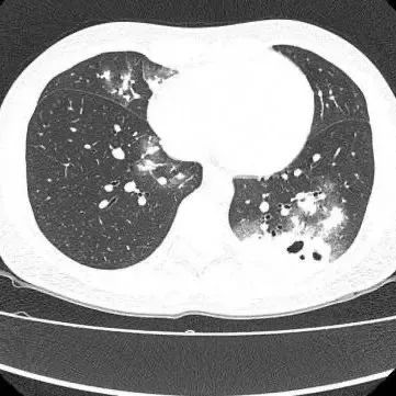 在免疫功能正常的患者中,肺部常见的表现为单发或多发的结节,有时伴有晕征(指结节周围的低密度环),结节内可能见到空洞,胸膜下多见。在免疫功能缺陷(如恶性肿瘤、白血病等)的患者中,可能表现为弥漫的、大片的肺炎样改变。
