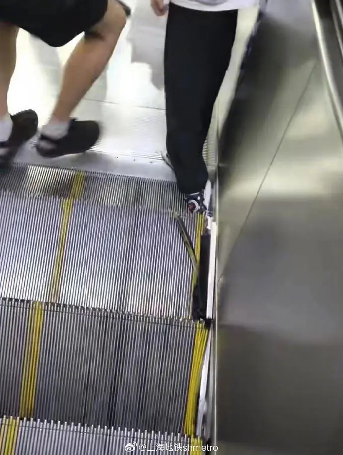 眼下,很多乘客已经知道,洞洞鞋很容易被自动扶梯的“咬住”。其实,不仅洞洞鞋,凉拖、长裙等,都有这一风险。所以,不论穿什么服饰,乘坐自动扶梯时都建议远离边缘。