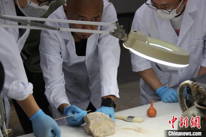 5月20日,河南洛阳,龙门石窟研究院的“文物医生”对文物进行修复。中新社记者 阚力摄