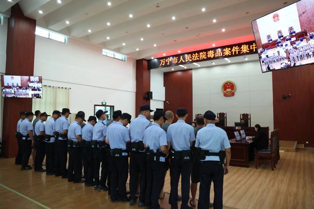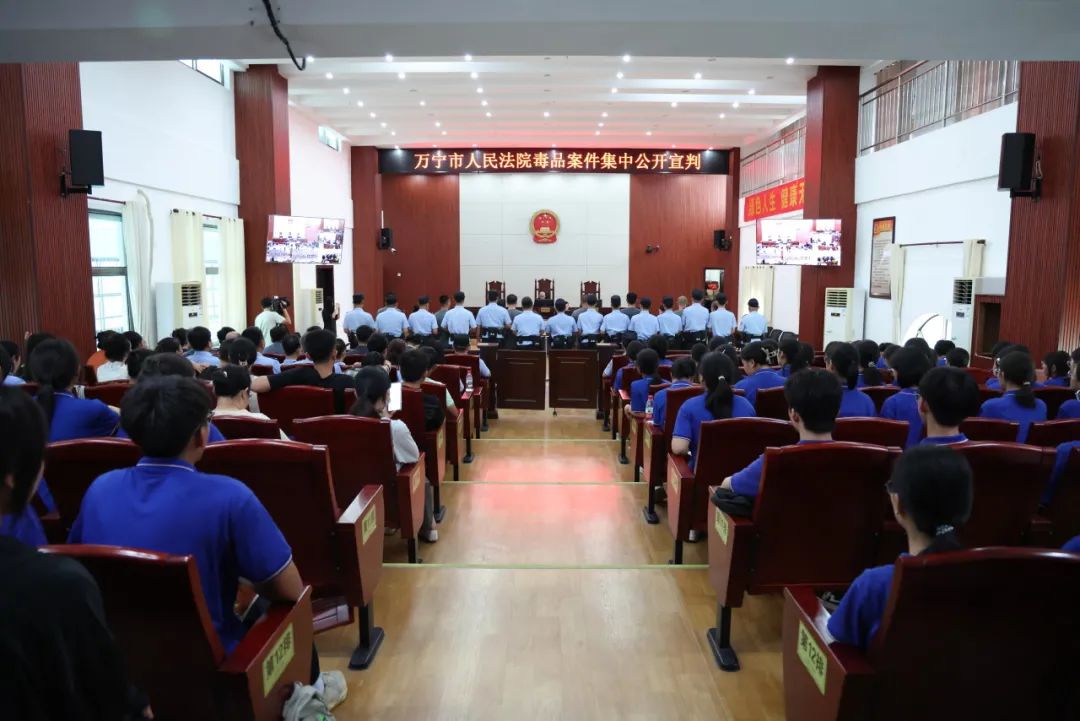 为依法打击和惩治毒品犯罪,彰显严打态势,在国际禁毒日即将到来之际,5月22日上午,万宁法院对2起7人毒品犯罪案件进行集中公开宣判,市人大代表、政协委员、检察院、公安局、司法局、万宁中学学生、媒体记者、家属代表等近百人到场旁听宣判。