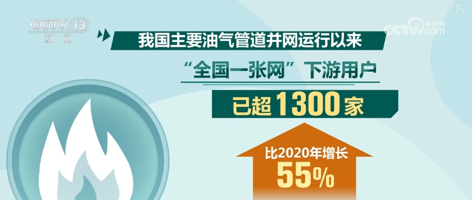 数据显示,我国主要油气管道并网运行以来,“全国一张网”下游用户已超1300家,比2020年增长55%,天然气管网平均负荷率从68%提升至接近80%。天然气一次入网量由1570亿立方米升至2400亿立方米,进一步拉动全国天然气表观消费量突破4200亿立方米。