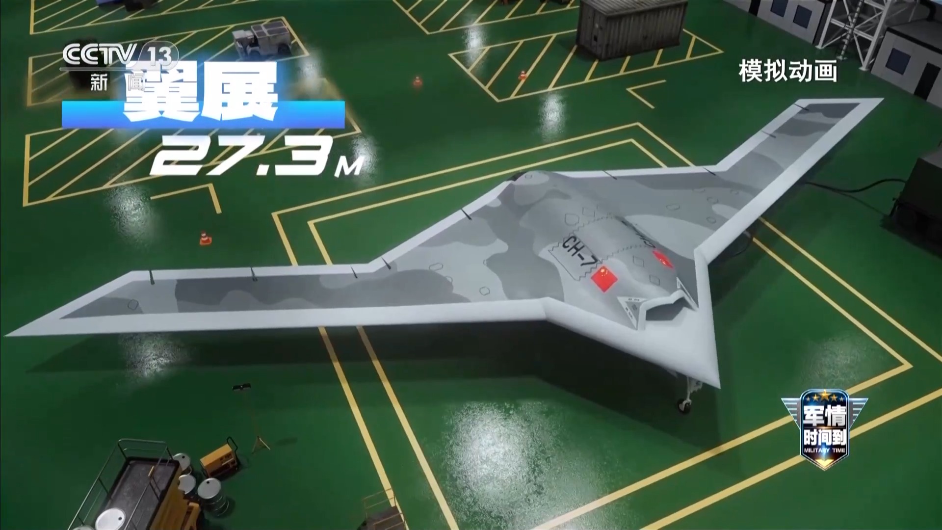 中国航天空气动力技术研究院 房帅:这款无人机跟我们家族其他款无人机最大的不同就在于它整个飞翼布局,整个气动布局采用的是翼身高度融合,我们采用的是水平尾翼,确保气动性能不降低的情况下,最大限度保证它的隐身能力。