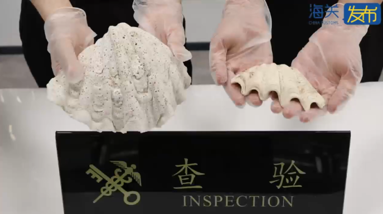 5月20日,经拱北海关技术中心鉴定,确认其分别为番红砗磲和长砗磲,为《濒危野生动植物种国际贸易公约》(CITES)附录Ⅱ所列物种,属国家二级保护野生动物。