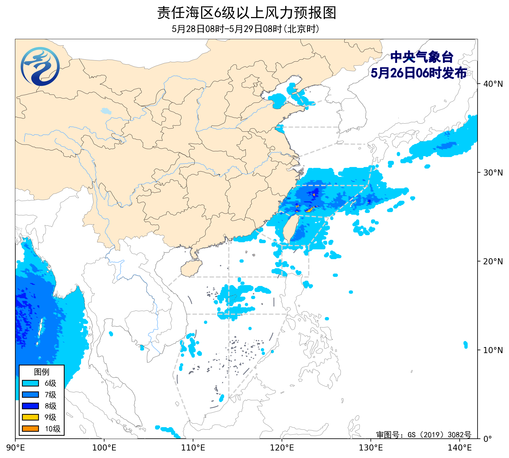 28日08时至29日08时,东海南部海域将有5~6级、阵风7级的偏东风增大到7~8级、阵风9级的东北风,台湾以东洋面将有4~5级的偏东风增大到6~7级、阵风8级的偏南风,渤海海峡将有4~6级、阵风7级的东南风到偏南风,东海北部海域将有4~6级、阵风7级的偏东风,台湾海峡将有4~6级、阵风7级的东北风到偏北风。