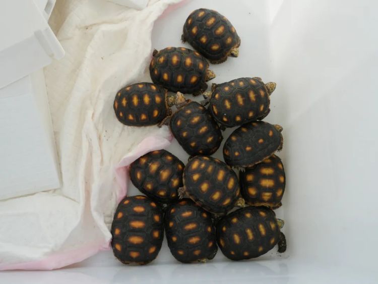 皇岗海关关员在福田口岸旅检大厅对进境旅客及其行李物品进行监管时,发现一名选择“无申报通道”的身着长款半身裙的女性旅客体态臃肿、步履匆忙,故意使用手提袋遮挡身体,遂引导该名旅客到查验区作进一步检查。经查验,海关关员发现该名旅客穿着两层紧身裤,在紧身裤夹层内发现用黑色丝袜紧缠的活体龟共30只。后经广东鹏海司法鉴定所鉴定,该批活体龟为爬行纲龟鳖目陆龟科南美陆龟属红腿陆龟或黄腿陆龟,被列入《濒危野生动植物种国际贸易公约》(CITES)附录Ⅱ。目前,该批活体龟已移交深圳市规划和自然资源局福田管理局收容救护。