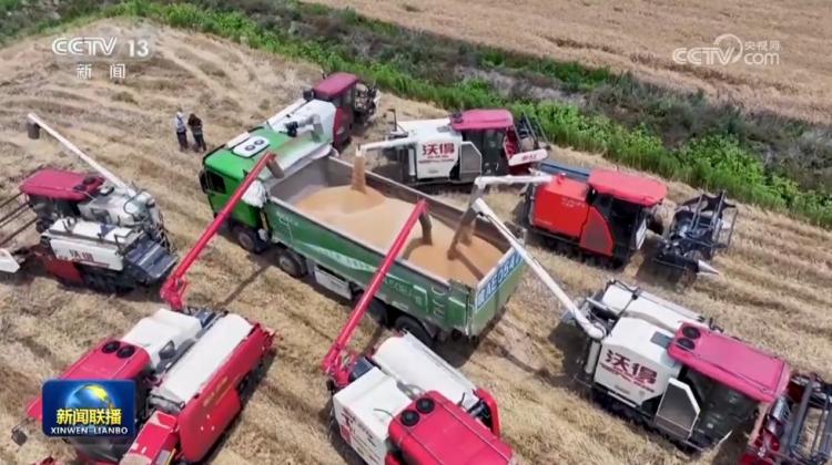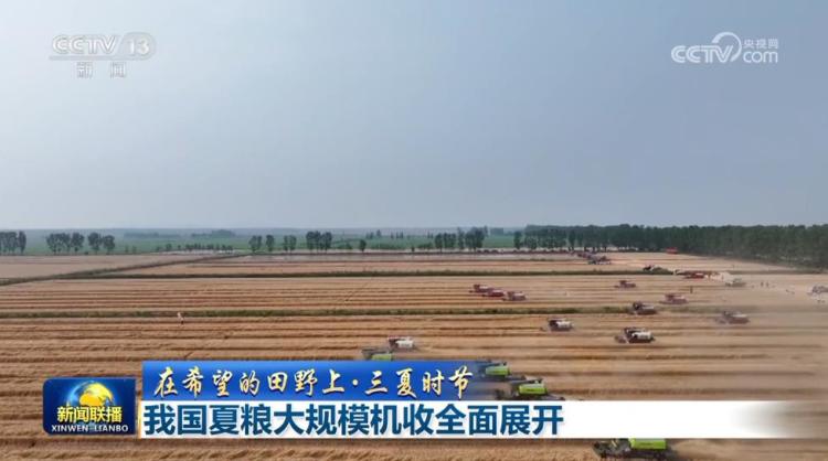 央视网消息 (新闻联播):眼下,我国夏粮主要作物冬小麦正由南向北逐渐成熟,日机收面积连续3天超过400万亩,标志着夏粮大规模机收全面展开。