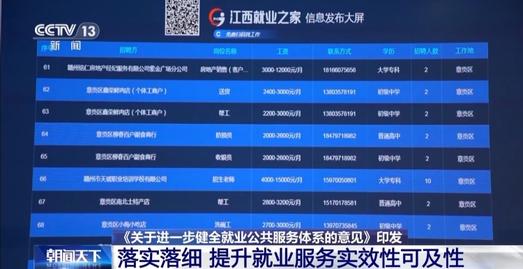 各地还将着力加强就业信息资源库建设,支持“大数据+铁脚板”模式应用,同时打造智能化服务平台,支持人岗精准、高效对接,实现数智就业服务。培养一批职业化人员队伍,推进就业服务的专业化。