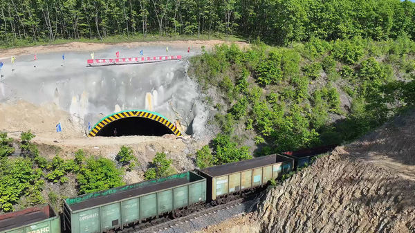 人民网哈尔滨5月28日电 (尚城)5月28日,在黑龙江省滨绥铁路绥芬河至国境线提质改造工程新建绥芬河隧道内,随着挖掘机将最后1米岩壁钻通,中欧班列“东通道”绥芬河隧道全线贯通。