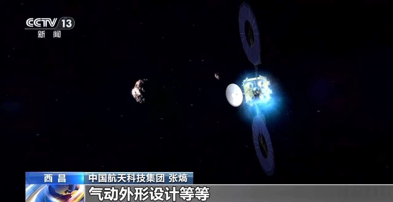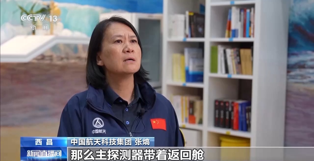 中国航天科技集团 张熇:我们的探测器主要是由两大部分组成,一个主探测器加一个返回舱。主探测器带着返回舱到小行星附近开展探测,然后采样返回。到地球附近,我们主探测器和返回舱分离,返回舱再入大气层,主探测器我们拉起机动之后,再经过约7年飞到主带彗星附近去做近距探测。