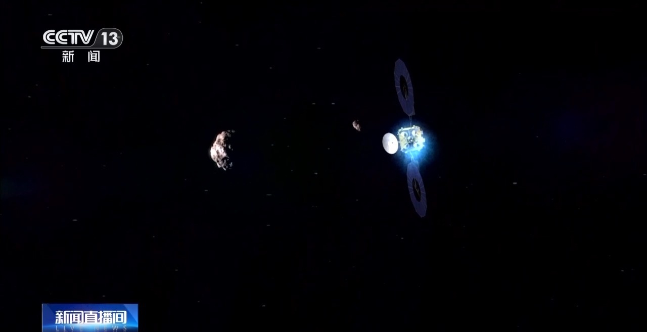 中国航天科技集团 张熇:为了能确保不管它是星壤(小行星样品)很多、很厚,还是很薄、很少的风化层,我们都能够获得一些样品,所以我们设计了不同采样方式,在探测器近距探测之后,再规划我们到底在哪采样,到底用哪一种方式。