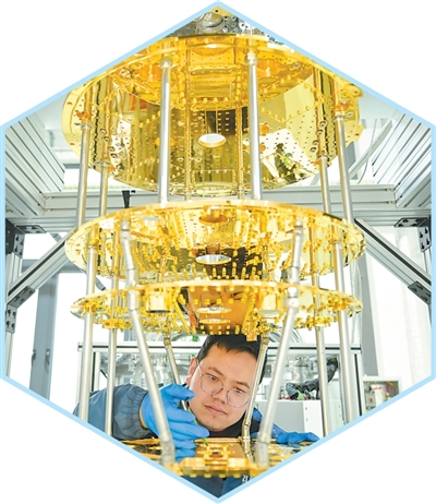 安徽合肥一家科技公司的技术人员在安装稀释制冷机的换热组件。