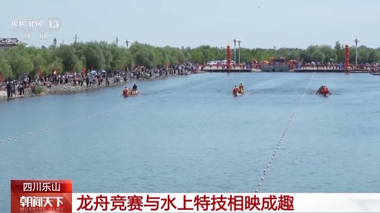 四川乐山夹江县24支龙舟代表队展开激烈角逐。赛事现场,民俗文化与水上特技相映成趣。江岸边,秧歌、腰鼓、龙灯、狮灯等传统表演轮番上演;水面上,尾波特技、单人技巧艇、腾空椅特技秀接连登场,现场一片欢腾。