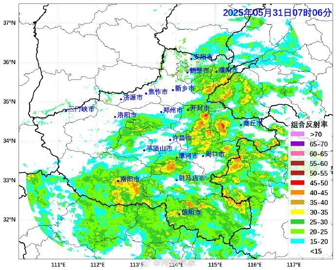 昨夜至今晨河南省西部南部北部有阵雨雷阵雨。预计今天黄河以南有小雨,东部南部有中到大雨。