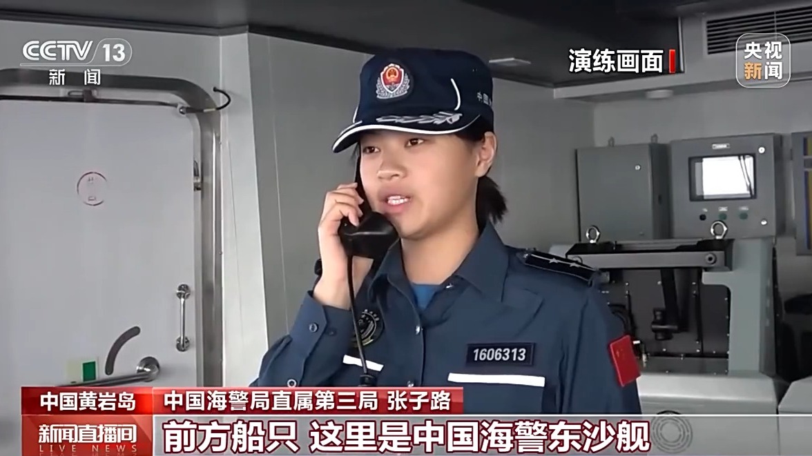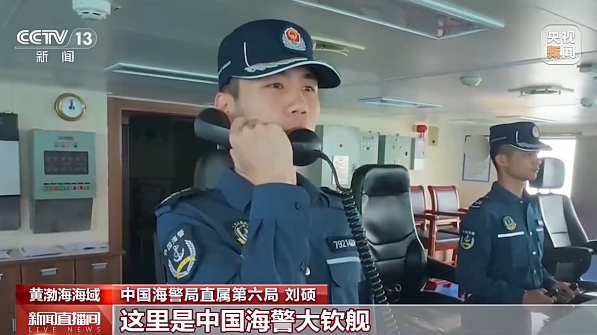中国海警局直属第六局 刘硕:过往船舶请注意,这里是中国海警大钦舰,正在执行执法巡查任务,如遇需帮助,请立即与我舰联系,或拨打95110海上报警电话。
