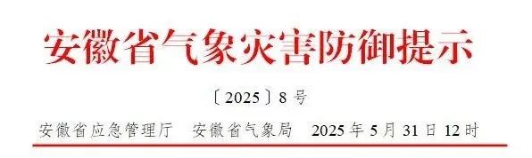 5月31日,据安徽气象官方微信,安徽省应急管理厅、安徽省气象局发布《强降雨防御提示》
