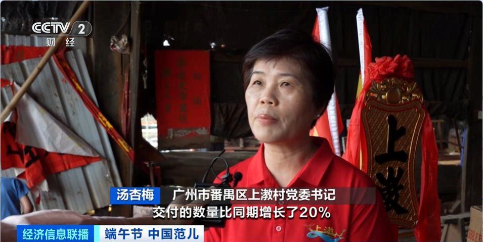 广州市番禺区上漖村党委书记 汤杏梅:上漖村8家龙船厂仅2025年已经下水45条新龙船,交付的数量比同期增长20%,几家大的船厂订单已经排到2027年。