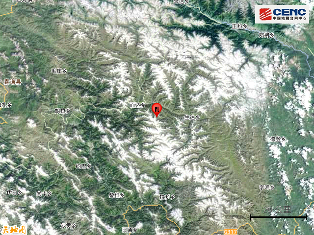 震中地形: 震中5公里范围内平均海拔约4484米。