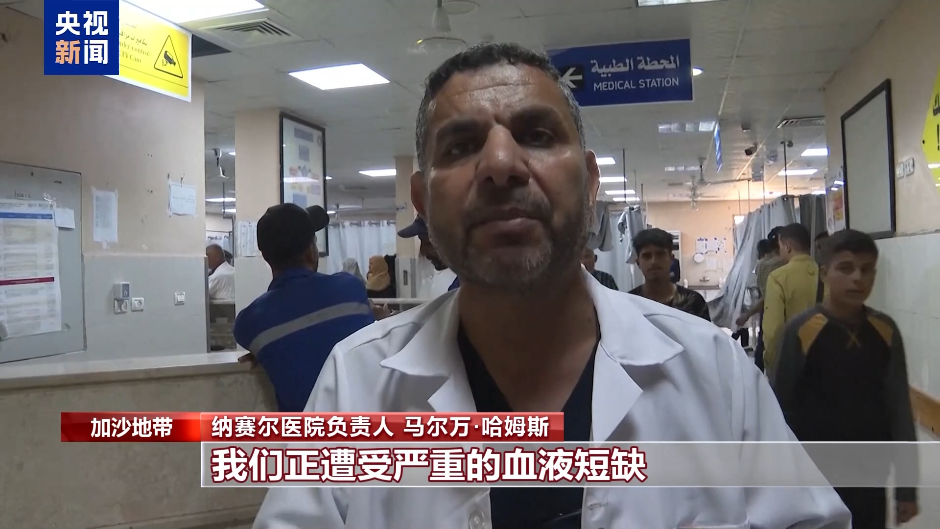 纳赛尔医院负责人 马尔万·哈姆斯:我们正遭受严重的血液短缺,我们经常呼吁人们来献血。但是当献血者到达时,我们发现这些年轻人中的大多数都患有贫血症,这是由于以色列进行占领,并对巴勒斯坦民众发动饥饿战争所导致的。加沙地带大多数人都营养不良且存在免疫缺陷。