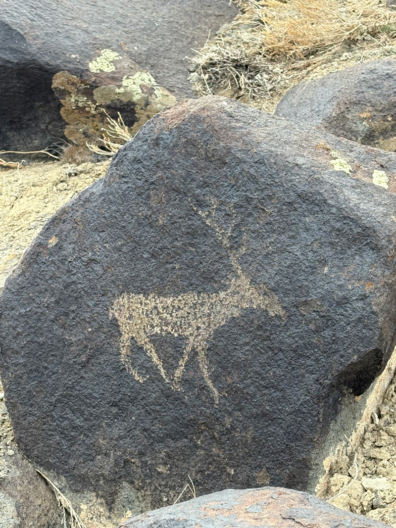 无独有偶,在第四次全国文物普查中,除博州外,阿勒泰地区、哈密市也有岩画新发现。4月,青河县的吾勒肯布勒合岩画被列入“四普”新发现。60幅以点线凿刻的岩画清晰可辨,既有生动的狩猎场景,也有古人对生命繁衍的崇拜。其中,鹿、骆驼、马等十余种动物栩栩如生,夸张的鹿角极具艺术感染力。