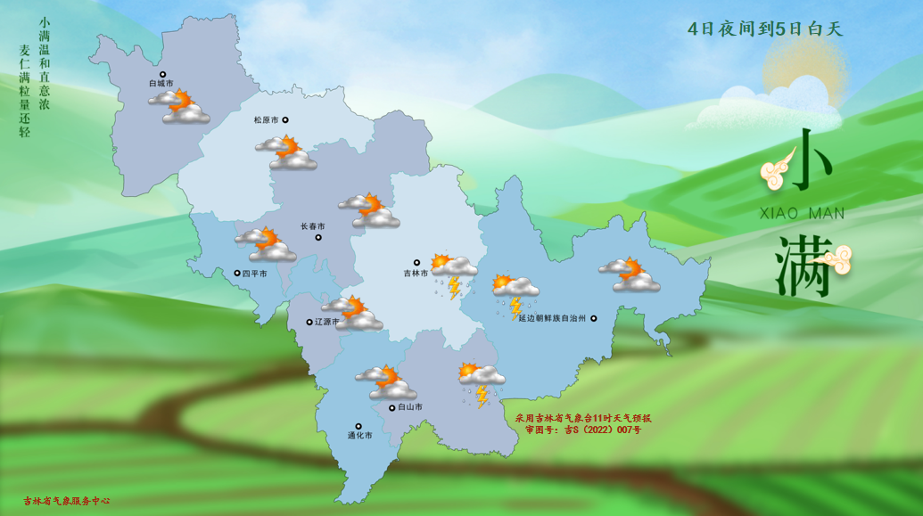 吉林省气象局、省农业农村厅联合发布第33期春播气象提醒:4日东部有阵雨或雷阵雨,5日东南部有阵雨或雷阵雨。4日开始气温逐渐回升。建议加强水旱田田间管理,促进水稻返青分蘖和旱田作物幼苗生长。