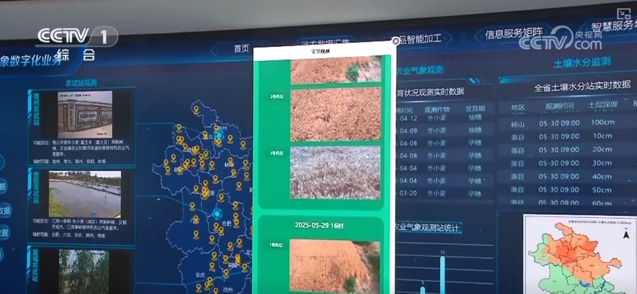 精准的农业气象预报是如何实现的?工作人员介绍,安徽全省已布设了65个高标准农田气象监测站和85个自动土壤水分监测站。通过平台算法,这些站点收集的气象数据与农田监测数据深度融合,每天生成包括夏收适宜度预报、干热风风险等级在内的十多种数字化农事指导产品,预报精度可达1公里范围。