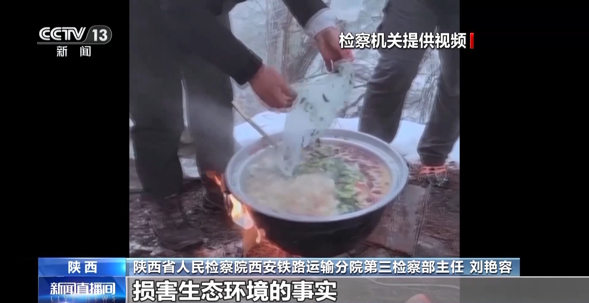 陕西省人民检察院西安铁路运输分院第三检察部主任 刘艳容:我们梳理查明,该公司2024年组织非法穿越秦岭核心保护区155次,参与人数3808人,收取报名费670632元,以及穿越中存在破坏高山植被、生火做饭等损害生态环境的事实。
