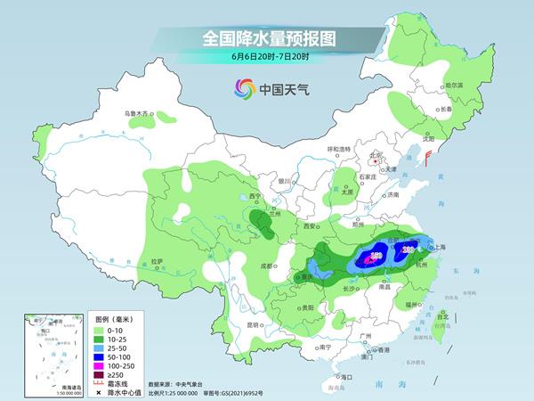 这次过程中,湖北东部、江西北部、安徽南部、浙江西北部、江苏南部、上海一带为降雨核心区域,6日至10日累计降雨量将达到80至160毫米,局地220毫米以上。