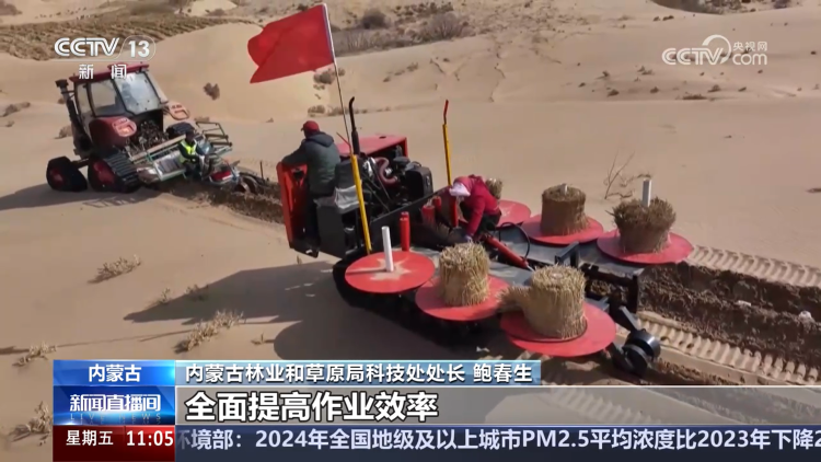 两年间,我国大力推进机械治沙,机械治沙造林比例接近50%,科技治沙效能不断提高。