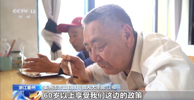 浙江省衢州市常山县球川镇人大主席 江俊:双明镇的老百姓凭身份证,60岁以上享受我们这边的政策,也可以到我们这边“幸福食堂”来吃饭。