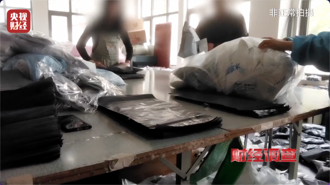 记者辗转多地调查发现,在江西上饶弋阳县信丰服装加工厂,这些所谓的防晒衣未标注产品名称、厂名、厂址等信息,防晒衣包装袋上赫然印着“UPF50+”的标识。